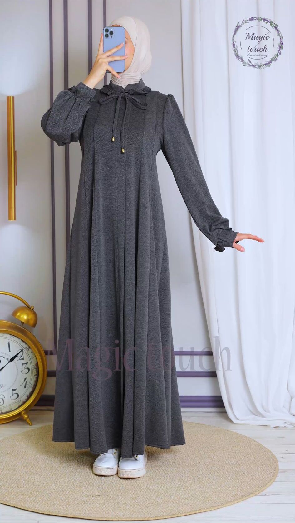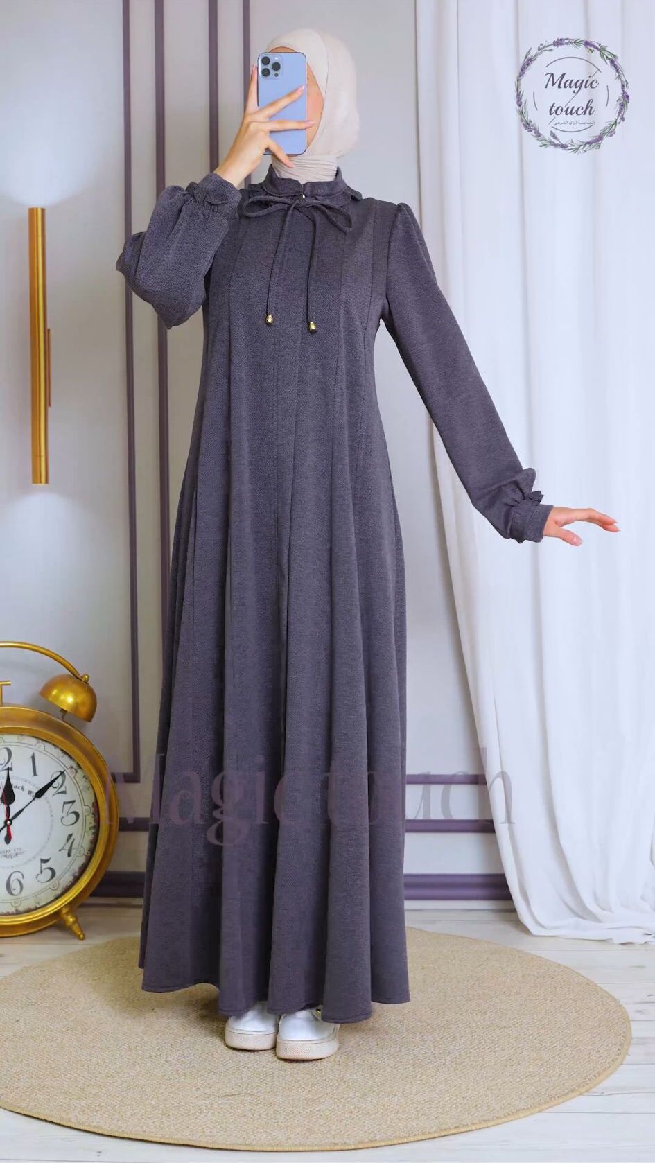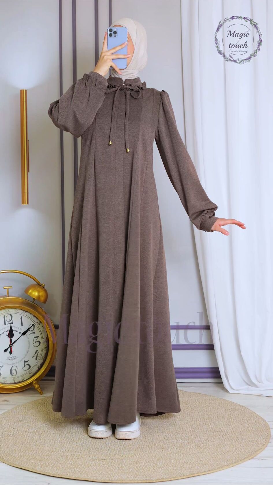 جلباب سحاب طويل خامة مصوف مونس انثوية ، مع قبة كشكش وربطة عنق طول ، اكمام فلكلورية ، الجلباب ١٤٥سم